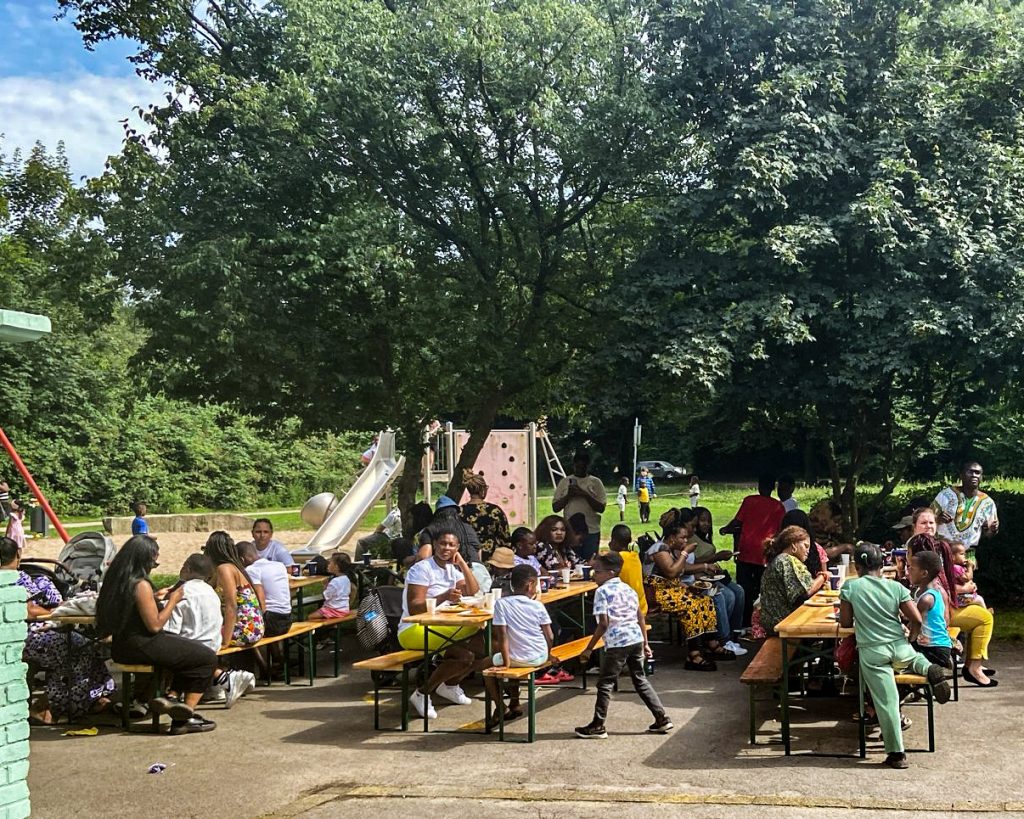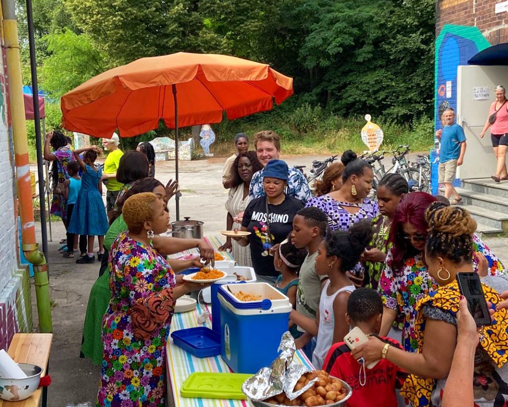 Unsere afrikanische Frauengruppe hat für das Fest köstliches afrikanisches Essen zubereitet. Es gab Musik, Tanz und Spiele. Gemeinsam haben wir gefeiert und Neues kennengelernt. Falls ihr dieses schöne Fest verpasst habt, gibt es vielleicht im nächsten Jahr eine neue Chance.